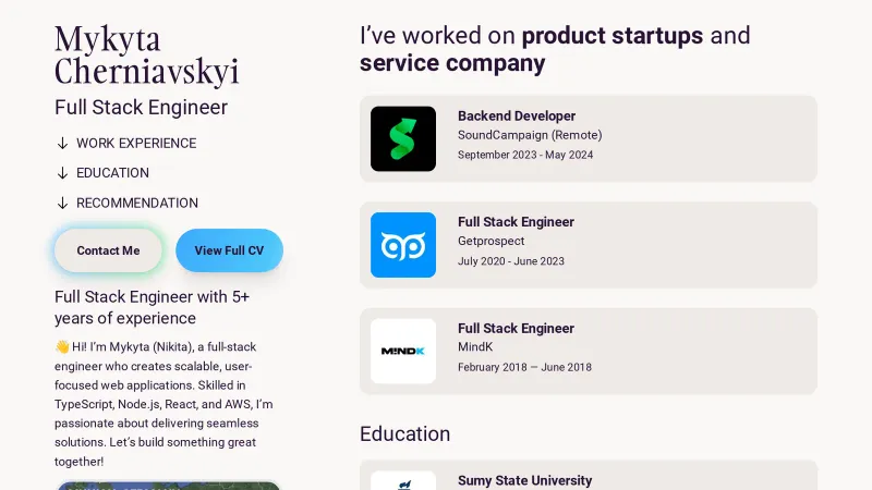 Mykyta Cherniavskyi | Full Stack Engineer