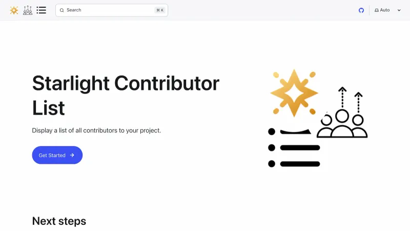 bluesky-comments-tag- a lightweight, customizable web component to use Bluesky for your website commentsstarlight-contributor-list- display a list of all contributors to your GitHub projectstarlight-sidebar-topics-dropdown- a Starlight plugin to add a drop down navigation to your sidebarstarlight-cooler-credit- Adds a Houston-themed credit to Starlight or Astro